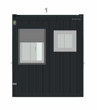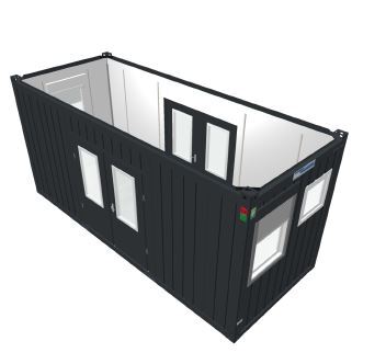 KC-1-20-NEX Kontorcontainer på 20 fot for midlertidige eller permanente kontorløsninger. Konstruert med stabil stålramme, isolerte vegger og vinduer for naturlig lys. Egnet for byggeplasser, arrangementer og arbeidsområder.