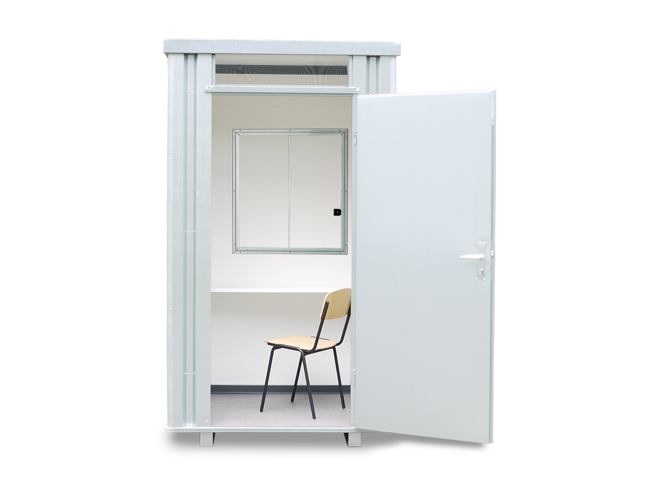 Vakt- og billettbod basert på 20-fots container. Utstyrt med dør, vinduer og belysning. Større løsning… les mer