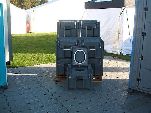 Toalettvogn med 6 tanktoaletter fordelt på dame- og herreavdeling. Utstyrt med vaskeservant og lys. Utrekkstrapper… les mer