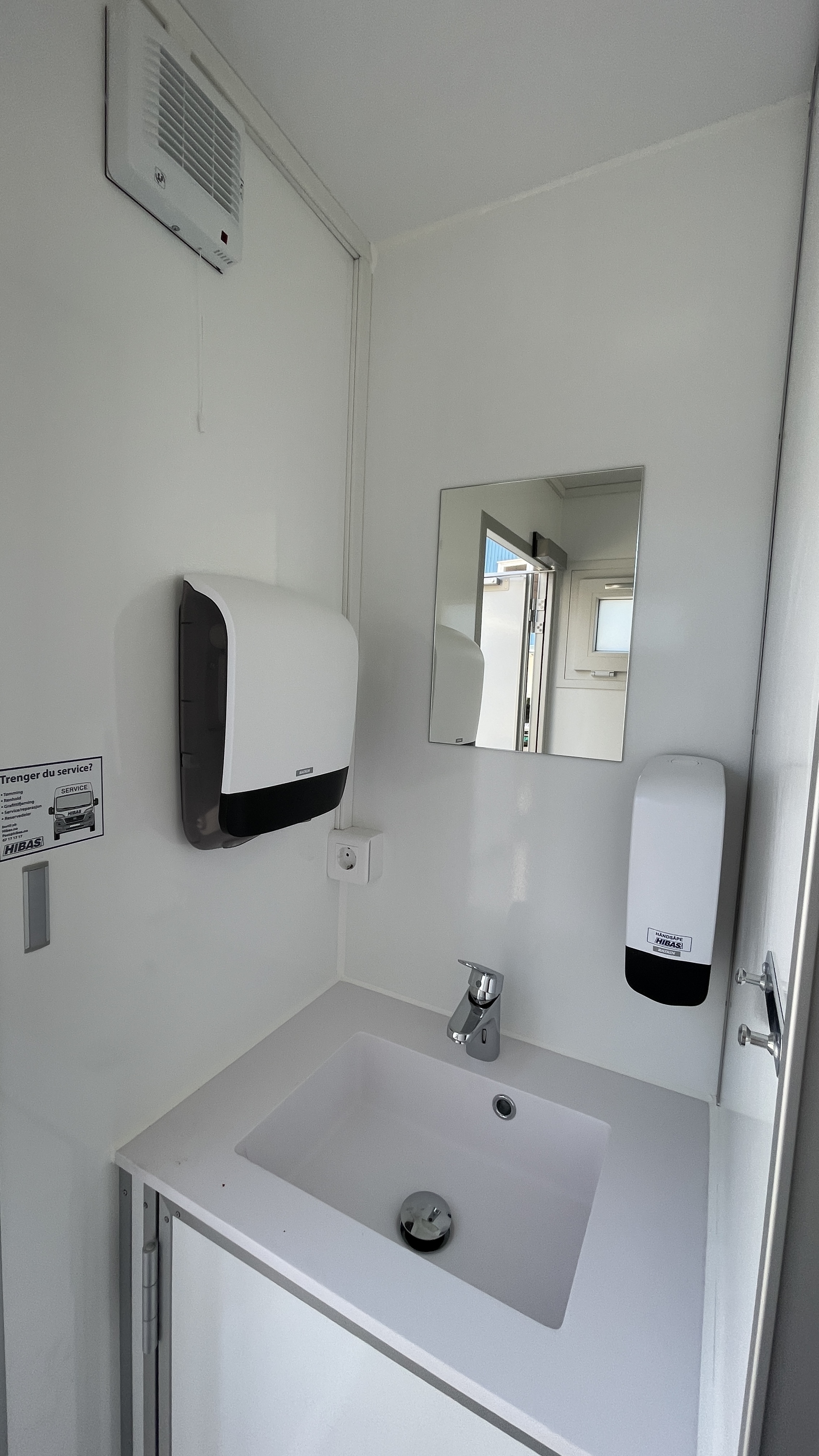 WC-container med 3 toaletter og 2 urinaler. Isolert konstruksjon for helårsbruk. Egnet for arrangementer, byggeplasser… les mer