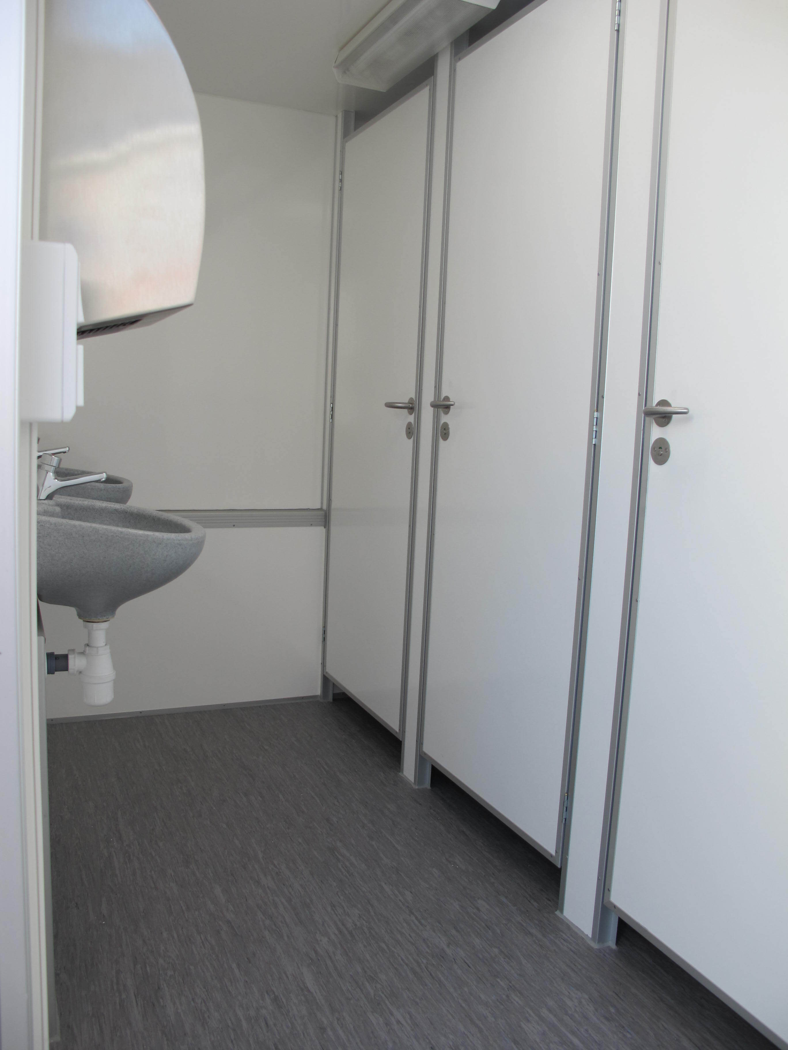 WC-container med 3 toaletter, 2 urinaler og 1 handicaptoalett. Komplett sanitærløsning for steder med høyt… les mer