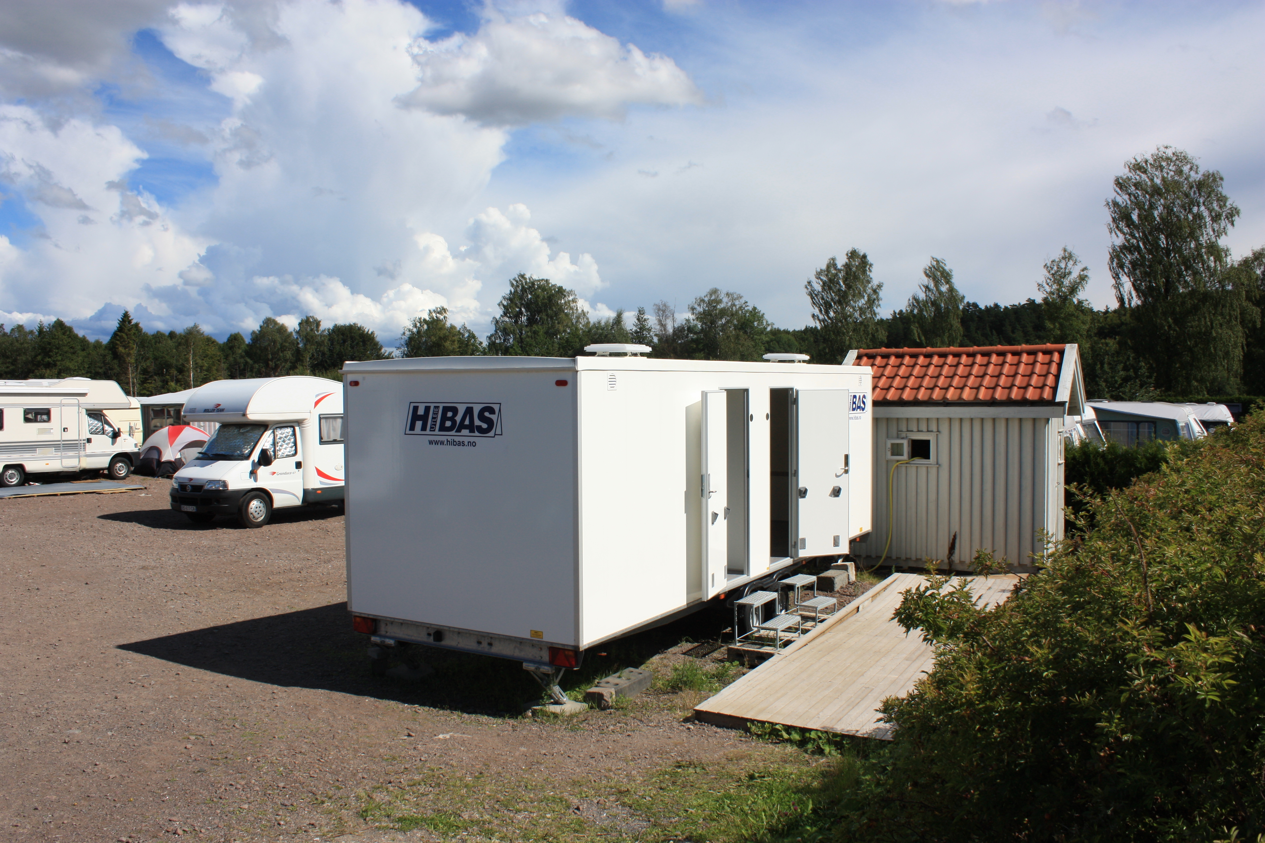 Isolert toalettkabin på hjul med hengerfeste. Utstyrt med toalett, håndvask, oppvarming og 500 liters tank.… les mer
