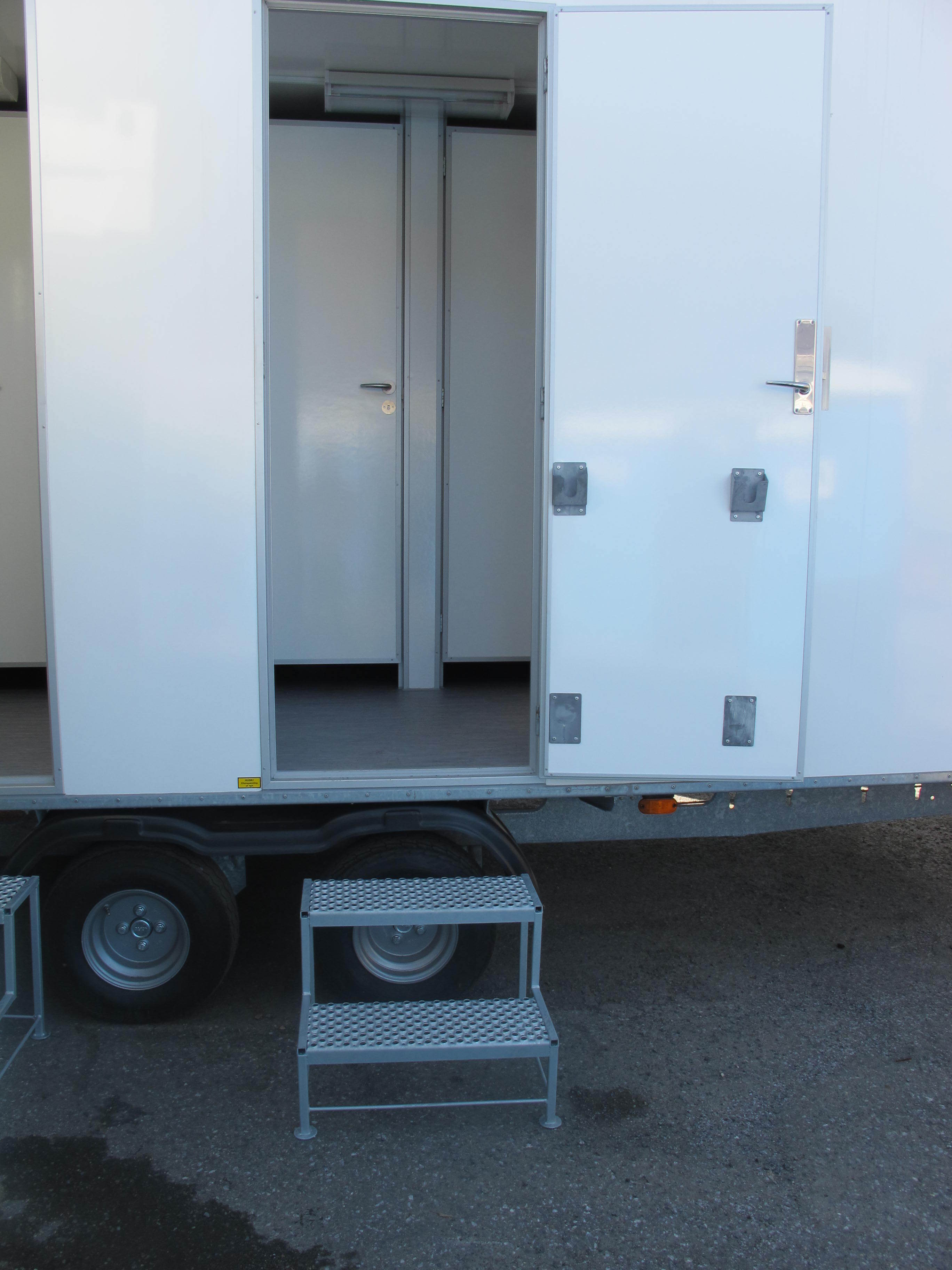 Toalettvogn med 4 separate VIP-tanktoaletter. Montert på hjul for enkel transport. Utstyrt med moderne sanitærfasiliteter.… les mer