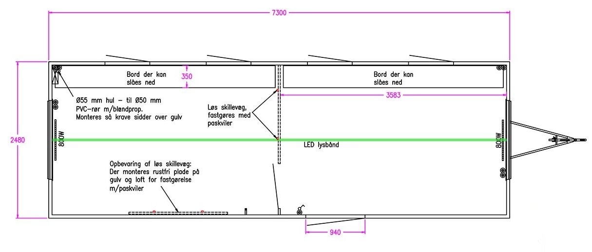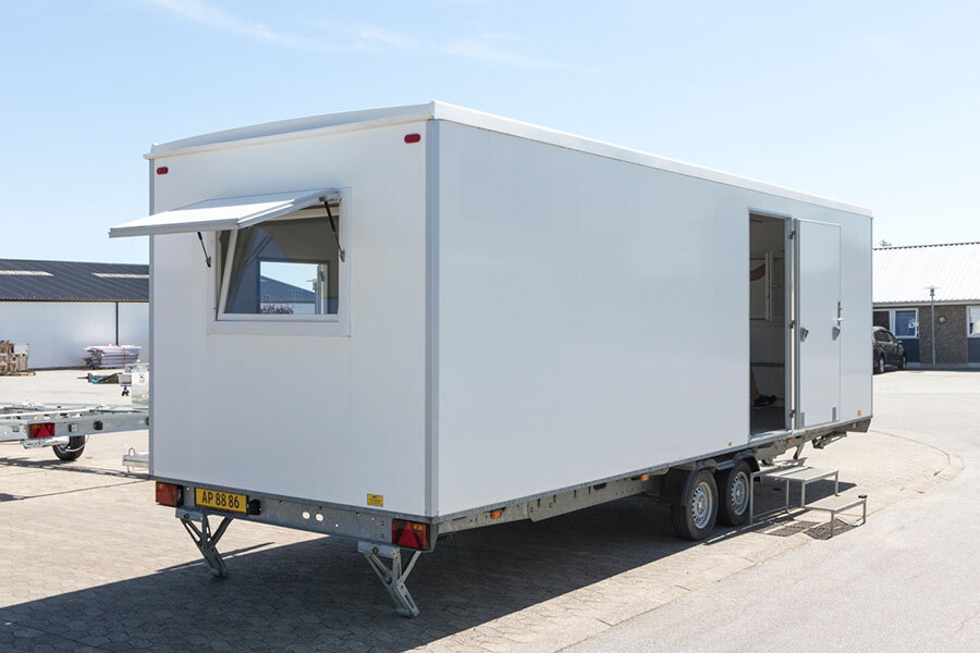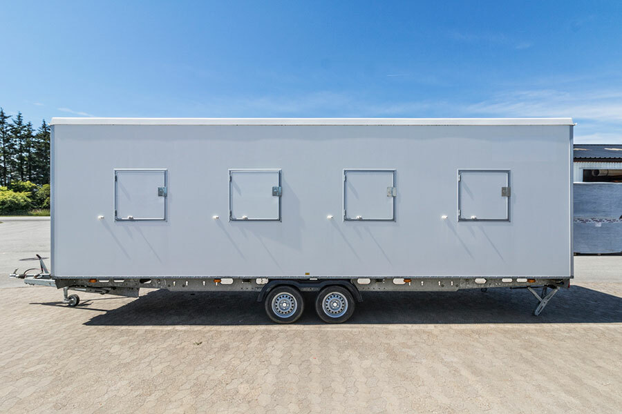 Isolert toalettkabin på hjul med hengerfeste. Utstyrt med toalett, håndvask, oppvarming og 500 liters tank.… les mer